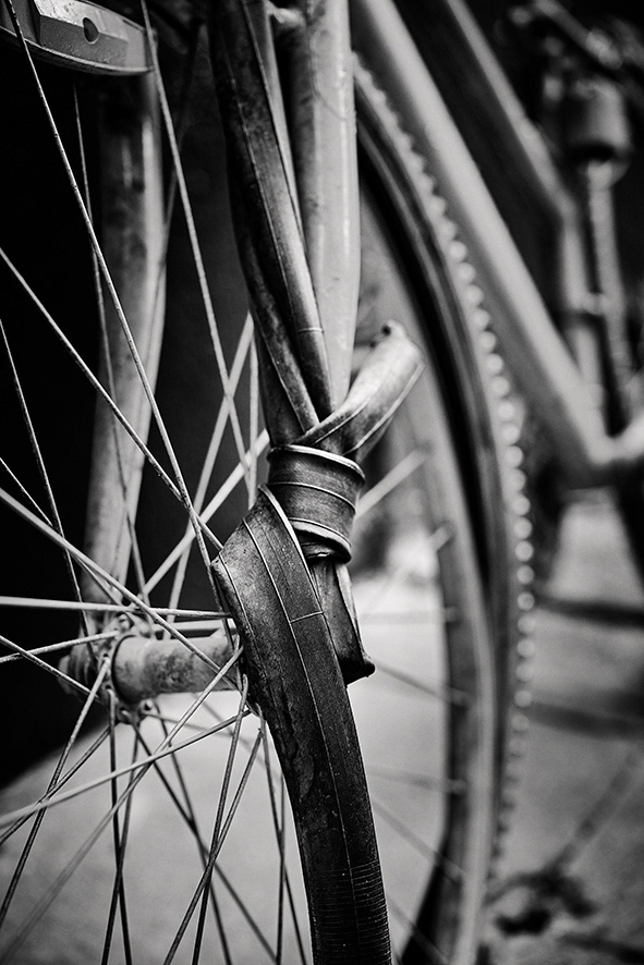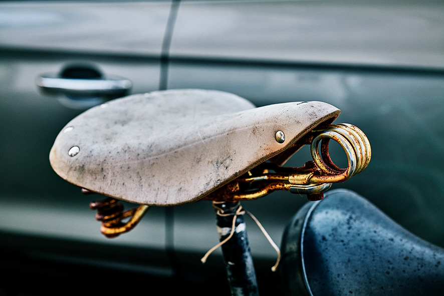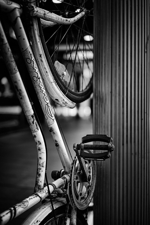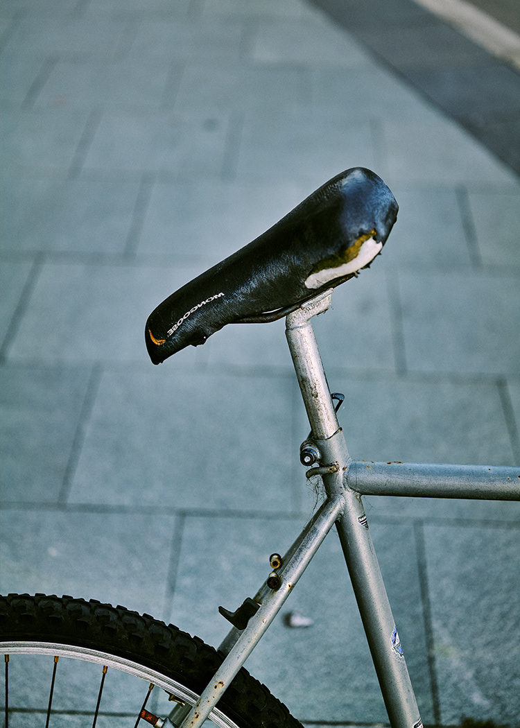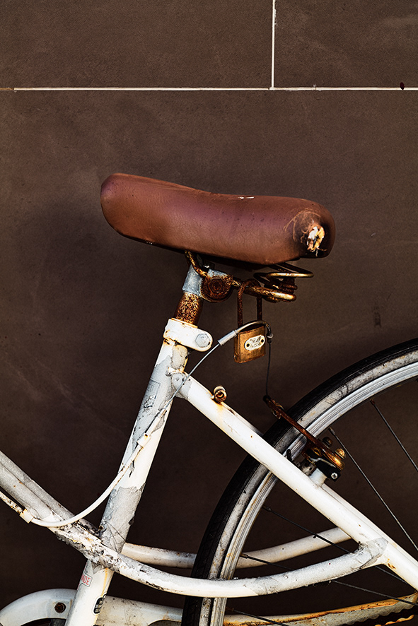 This series celebrates the quiet workhorses of urban life... bicycles that have earned their patina through years of faithful service. I’m drawn to the ones most people pass by: rusted disc brakes, weathered leather saddles, frames softened by time and the elements.