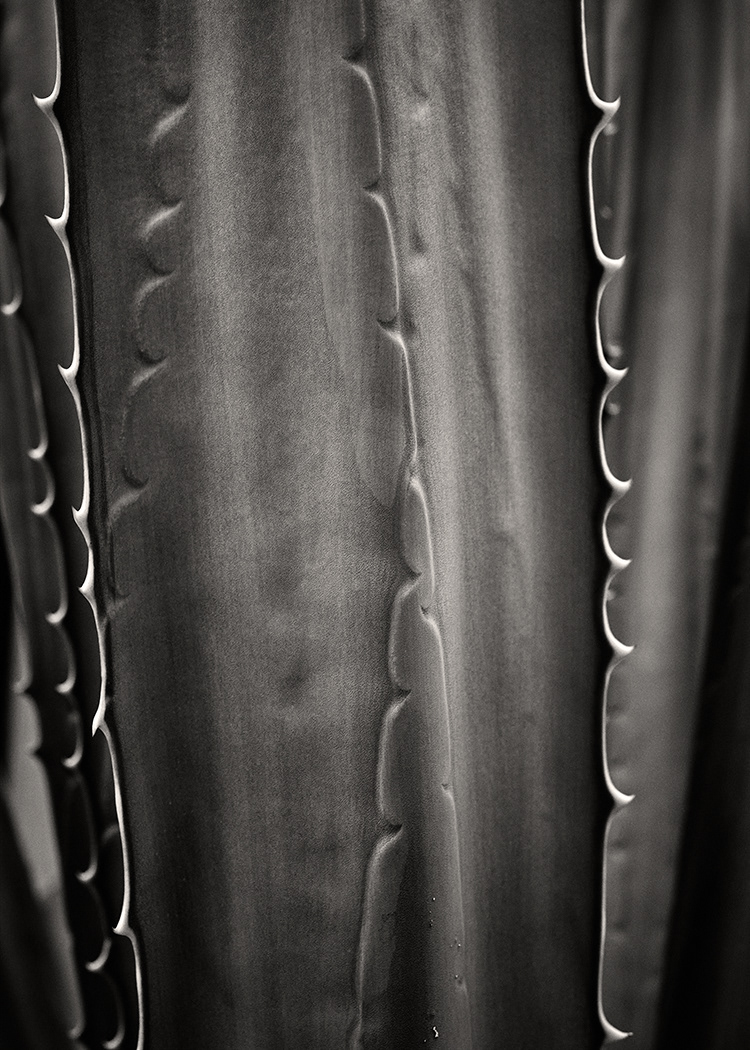 The narrative shifts to urban architecture, featuring a partially open roller door that disrupts the uniformity of the facade, hinting at hidden stories and the interplay between public and private spaces. An intimate detail of cactus spines provides a textural pause, revealing nature's defensive architecture in sharp relief and demonstrating the photographer's eye for close observation.
